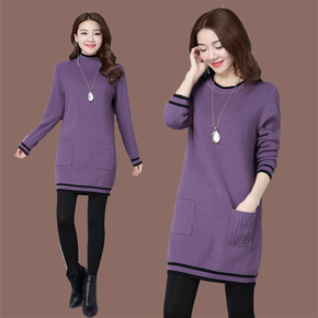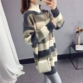 冬装毛衣女新款中长款韩版宽松条纹针织打底衫大码女装...