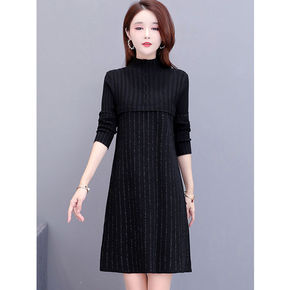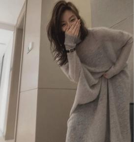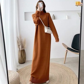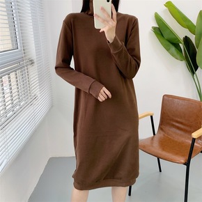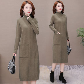 秋冬中长款过膝配大衣针织连衣裙女套头加厚内搭洋气半...