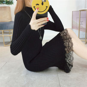 V领扭结蕾丝打底衫女秋冬2020年新款内搭洋气收腰...