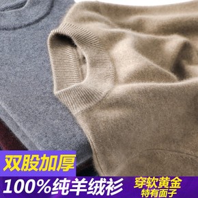 衫男100纯市产冬季加厚中年爸爸羊毛衫打底毛衣...