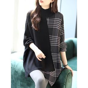 拼接中长款长袖毛衣女装宽松针织衫蝙蝠袖上衣新款...