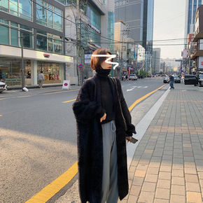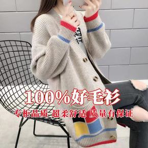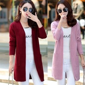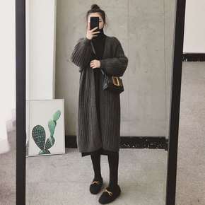 新款宽松上衣春季外套女针织开衫中长款韩版毛衣加厚潮...