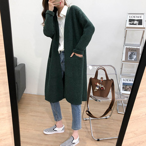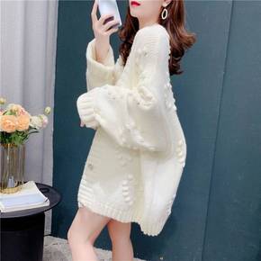 慵懒中长款开衫毛衣女宽松外穿休闲针织外套秋装新款温...