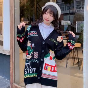手织织圣诞针织衫女冬针织加厚开始圣诞毛衣情侣外套跨...