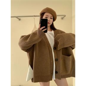针织开衫中长款毛衣外套女宽松2022春秋韩版加厚针...