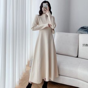 2020韩版修身显瘦中长款毛衣裙长袖打底针织伞裙女...