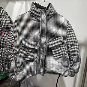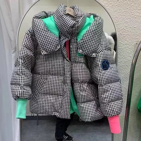 2022冬季新款字母千鸟格羽绒服女白鸭绒连帽加厚棋...