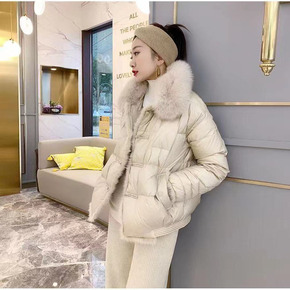 福利清 宽松保暖羊驼绒拼接白鸭绒羽绒服女防风立领派...