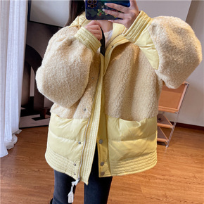 WT5016~清仓特价宽松保暖羊驼绒拼接白鸭绒羽绒...