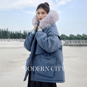厂家羽绒服羽绒棉服女2022新款冬季宽松显瘦毛领外...