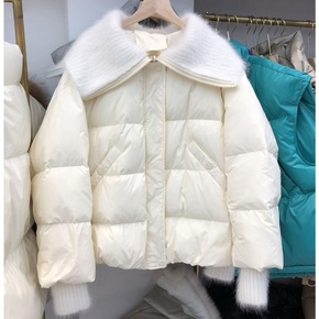 冬季新款2022气质百搭POLO领白鸭绒外套宽松大...