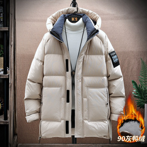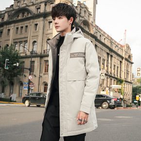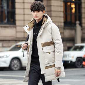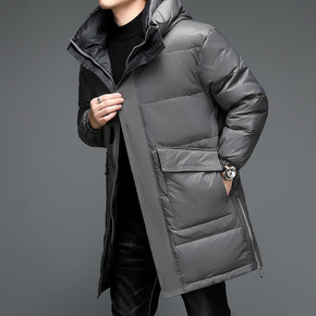 羽绒服男士中长款2022新款冬季纯色白鸭绒保暖青年...