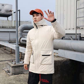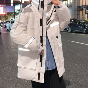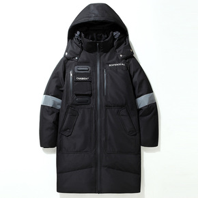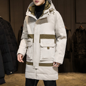 2022新款青少年中长款工装男式士羽绒服韩版织带加...