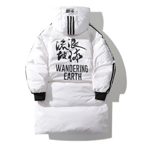 新款跨境青少年中长款工装男式士羽绒服韩版织带加厚冬...