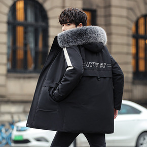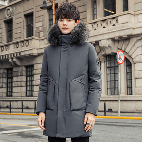 冬装羽绒服男中长款连帽帅气毛领派克服2022新款潮...
