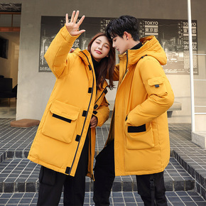 情侣工装羽绒服男中长款2022冬季新款国潮流加厚港...