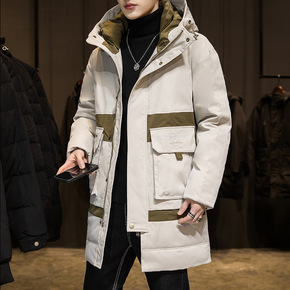 2022冬季羽绒服新款男士中长款情侣工装男白鸭绒男...