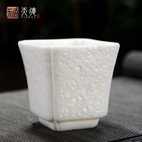 中国白德化白瓷功夫茶杯羊脂玉瓷功夫茶具品茗杯四方杯...