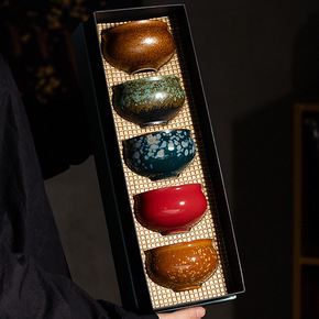 建阳建盏主人杯铁胎彩金六色杯茶盏高档礼盒装窑变功夫...
