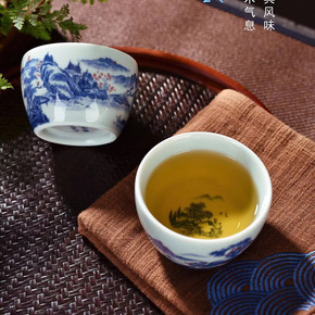 永乐青花杯釉里红 青花瓷釉茗杯主人杯个人饮杯功夫茶...