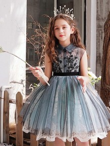 儿童礼服欧根纱绣花女童礼服花童婚纱裙主持人表演生日...