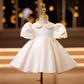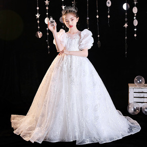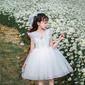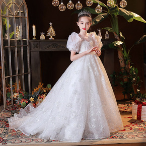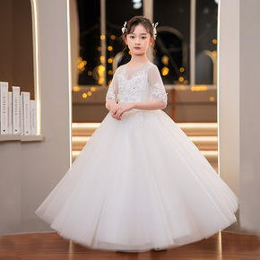 女童白色洋气公主裙花童生日礼服蓬蓬纱儿童小主持人钢...