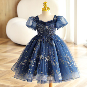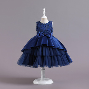 跨境女童网纱公主裙蓬蓬裙花童公主裙礼服主持人表演出...