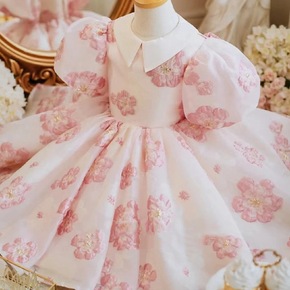 儿童礼服公主裙花童婚礼小女孩蓬蓬裙高端女童主持人钢...