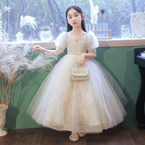 儿童礼服长款洋气晚礼服女童公主裙花童婚纱儿童主持人...