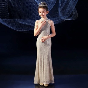 女童公主裙亮片生日主持人洋气质小提琴钢琴演出服走秀...