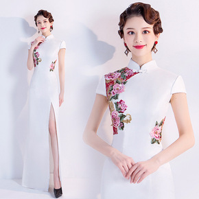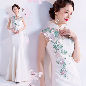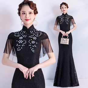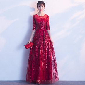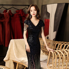 宴会晚礼服女2021新款气质高贵名媛年会主持人长款...