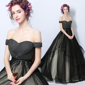 2021新款黑色小礼服蓬蓬裙晚礼服公司年会表演主持...