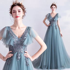 天使的嫁衣璀璨星光蓝色晚宴年会艺考演出主持人婚纱礼...