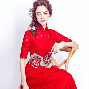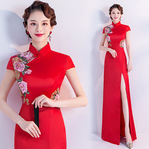 宴会晚礼服女2021新款红色气质主持人连衣裙合唱团...
