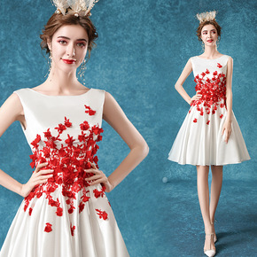 天使的嫁衣 气质缎面宴会年会舞台主持人短款婚纱小礼...