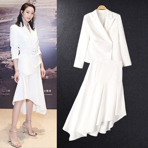 高端白色西装裙套装讲师演讲比赛服装气质年会主持人正...