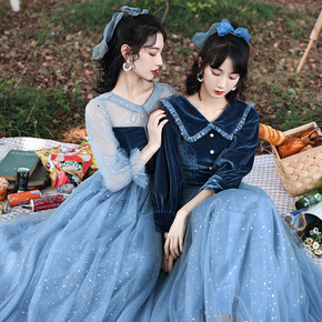 伴娘服冬款2021新款灰色姐妹团长袖显瘦主持人晚礼...