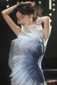 晚礼服女2021新款设计感小众年会主持人渐变色抹胸...