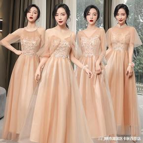 代发香槟伴娘服长款年新款夏季姐妹团主持人礼服女连衣...