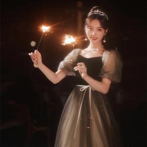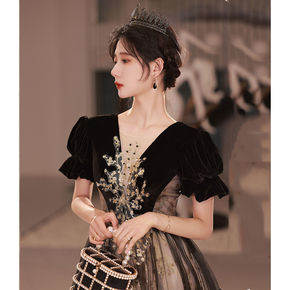 长款晚礼服女声乐艺考小众法式主持人宴会气质学生连衣...