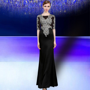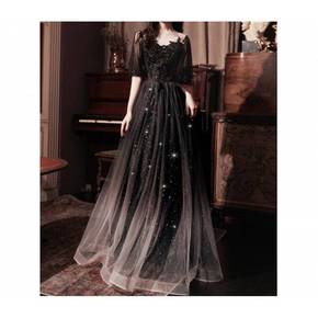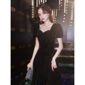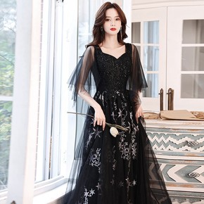 黑色大合唱团演出服装女成人长裙2021新款宴会主持...