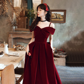 年会礼服女2021新款宴会气质法式一字肩轻奢小众高...