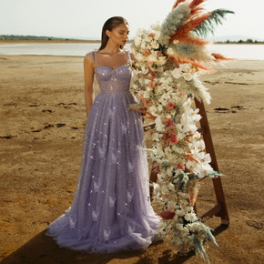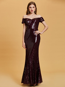 跨境亮片主持人晚礼服裙欧美聚会走秀露肩性感S型包臀...