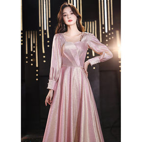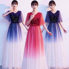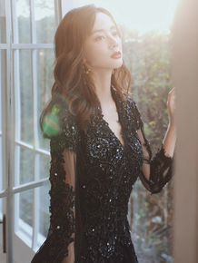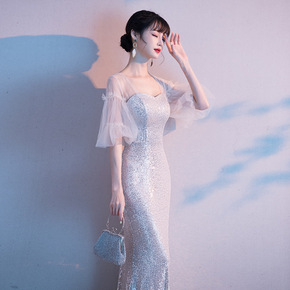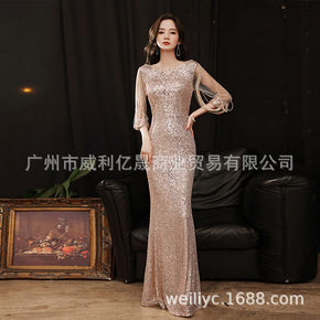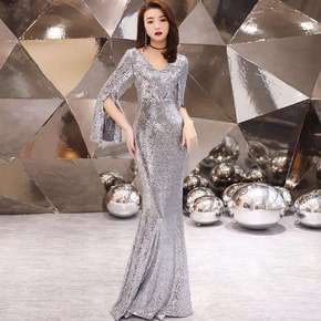 2021秋冬宴会气质优雅长款亮片气场女王主持人晚礼...