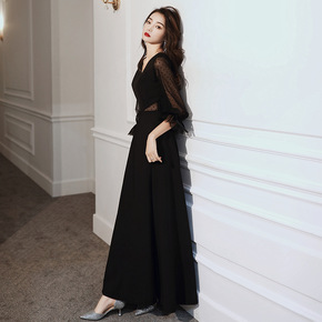黑色晚礼服裙女2020新款气质轻奢小众高端高级质感...