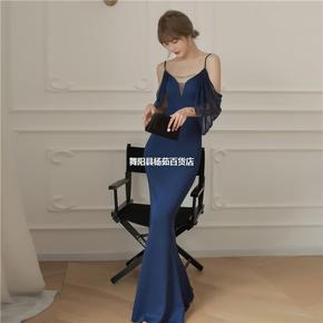 高端晚礼服裙女修身包臀气质显瘦宴会鱼尾吊带主持人长...