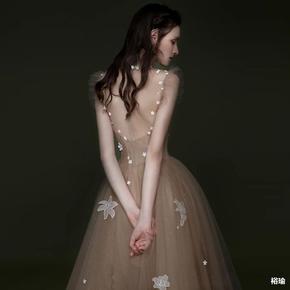 现货谭松韵明星同款名媛主持人气质晚礼服裙长款仙气连...