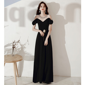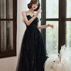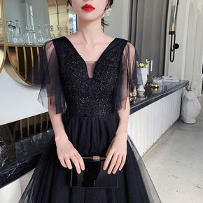 黑色小晚礼服裙女2021新款高贵宴会气质小个子主持...