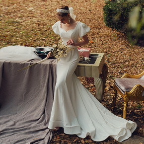轻婚纱2021新款气质新娘旅拍出门纱鱼尾简约宴会主...