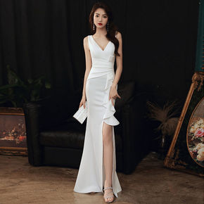高端晚礼服女2021新款宴会气质大气长款高级质感鱼...